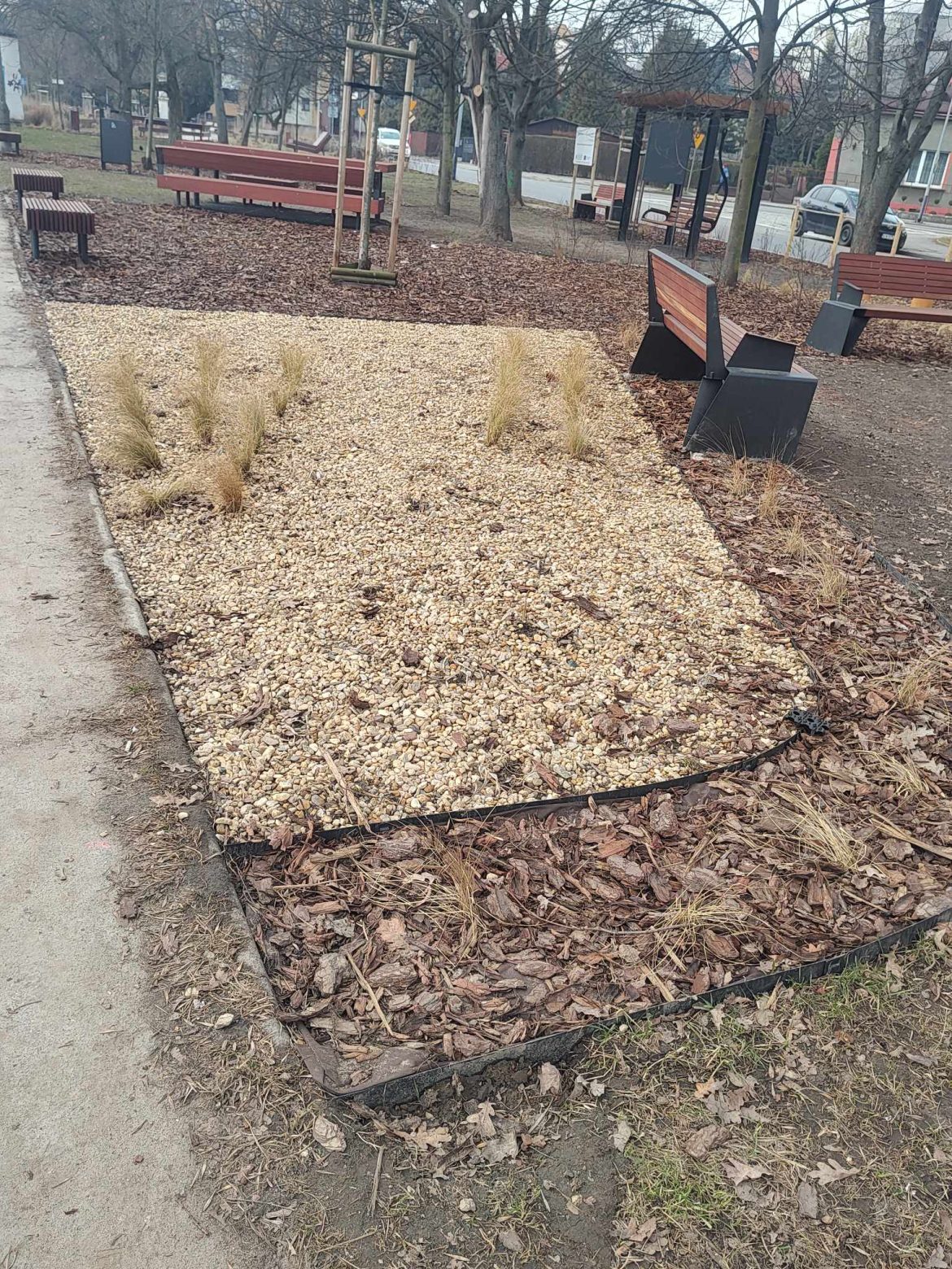 Co więcej, budując ogród nie obniżono terenu, aby ułatwić gromadzenie się tam wody opadowej. Otoczono go wysokim krawężnikiem od strony ulicy, a stykający chodnik po drugiej stronie jest nachylony w odwrotnym kierunku, także podczas ulewnych deszczy nadmiar wody popłynie wszędzie tylko nie do nowego ogrodu deszczowego.